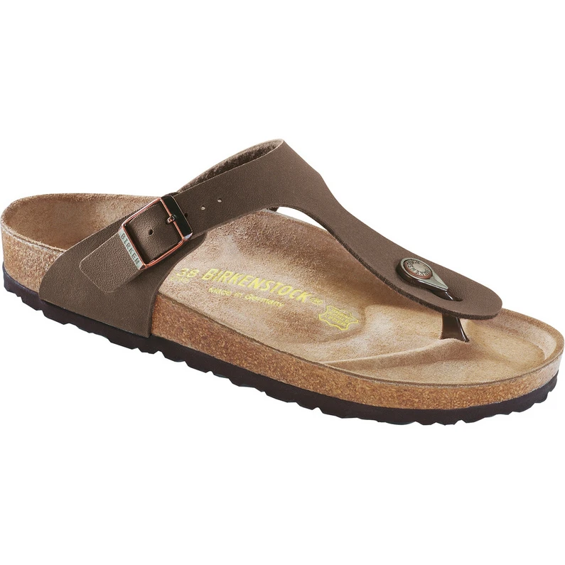 Unter den beliebten Birkenstock-Designs ist die Gizeh Core Sandale mit ihrem Riemen in Nubuk-Optik eine klassisch schlichte Variante.Beim Aufbau der Sohle wird in Sachen bewährtem Tragekomfort auch in dieser Version mit Zehentrenner keinerlei Kompromiss eingegangen. Das anatomisch geformte Fußbett aus dem festen und angenehm Dämpfenden Kork-Latex Material sorgt für eine stabile und natürliche Fußposition. Besonders angenehm trägt sich die Gizeh auch dank der weichen Vlies-Innenseite des technischen Birko-Flor® Riemenmaterials.Egal, ob zu Hause, in der Arbeit oder an diversen Urlaubsstränden, die minimalistische EVA-Laufsohle sorgt überall für entspanntes Sneaken.