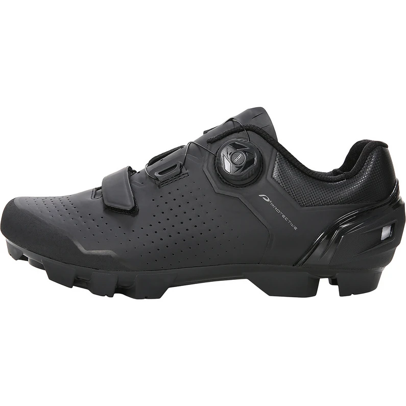Der Protective Lunar Rocks Gravelschuh macht jede noch so abenteuerliche Gravelrunde spielend mit.Der elegante und gleichzeitig sehr robuste Oberschuh besitzt eine innovative Belüftung und ist dank abriebsfestem Materials im Zehen- und Fersenbereich sehr langlebig und schützt deinen Fuß im Gelände. Die Schnellschnürung mit Drehverschluss ermöglicht einen schnellen Ein- und Ausstieg, sowie in Kombination mit dem Klettverschluss am Vorderfuß eine perfekte Anpassung an deinen Fuß.Dank der ergonomischen Einlegesohle mit dämpfenden Fersenelement bietet dir der Schuh auch auf langen Touren höchsten Tragekomfort und die grobstollige Sohle sorgt auch für Grip abseits des Pedals.