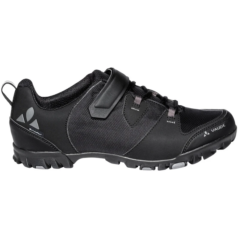 Die Vaude TVL Pavei STX sind leichte Allround-Radschuhe und bieten sich für Trail-Einsteiger, Genussradler und Alltags-Bikependler an. Das “TVL” Kürzel im Namen steht für “Travel” (Reisen) und entsprechend stattet Vaude den Radschuh mit einer etwas flexibleren Sohle für mehr Tragekomfort auf längeren Touren und beim Gehen aus. Die Abkürzung “STX” weist auf die wasserdichte und atmungsaktive Sympatex® Membran hin, die den Bikeschuh optimal auf jedes Wetter vorbereitet.Die Sohle verfügt über einen durchgehenden Nylon-Stabilisator für eine gute Kraftübertragung auf das Pedal. Für mehr Effizienz auf dem Bike können dank optimaler Kompatibilität mit SPD-Systemen auch Klickpedale zum Einsatz kommen. Mit der durch Schnürung und Klettriemen sehr gut regulierbaren Passform lässt sich ein rutschfreier Sitz und das gewünschte Maß an Kontrolle erzeugen.Weitere Pluspunkte des TVL Pavei STX wie das atmungsaktive, gezielt verstärkte Obermaterial, die griffige, leicht profilierte Gummilaufsohle oder die komfortable Ortholite® Einlegesohle mit verstärkter Pedalzone unterstreichen das durchdachte Konzept des universellen Allwetter-Freizeit-Bikeschuhs.