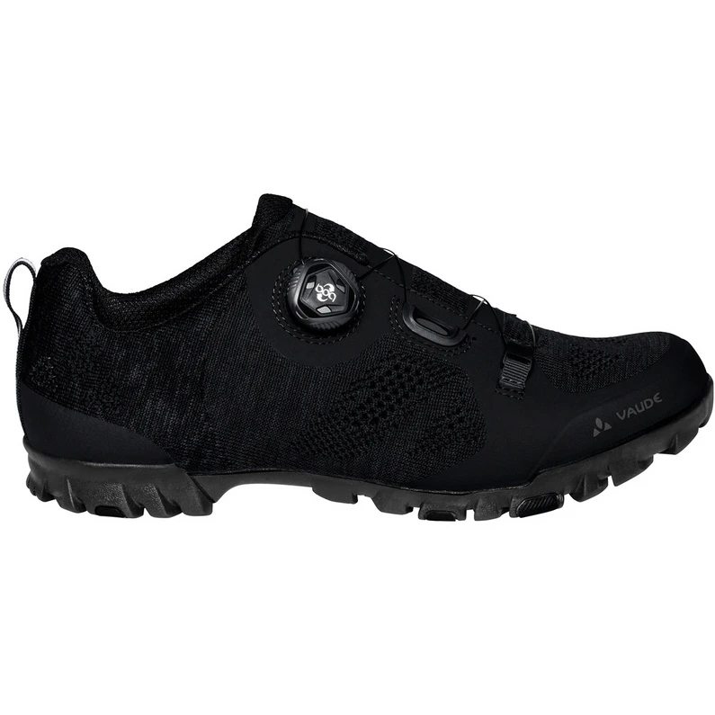 | weitere Technologie | elastisches, atmungsaktives Strick-Obermaterial, präzise Boa® L6 Schnürung, Ortholite® Einlegesohle aus Eco Plush PU Schaum mit verstärkter Pedalzone, Vaude TVL Sohle mit SUPtractionR20 Gummimischung, Flow Index 5 medium firm/Trail bis City |